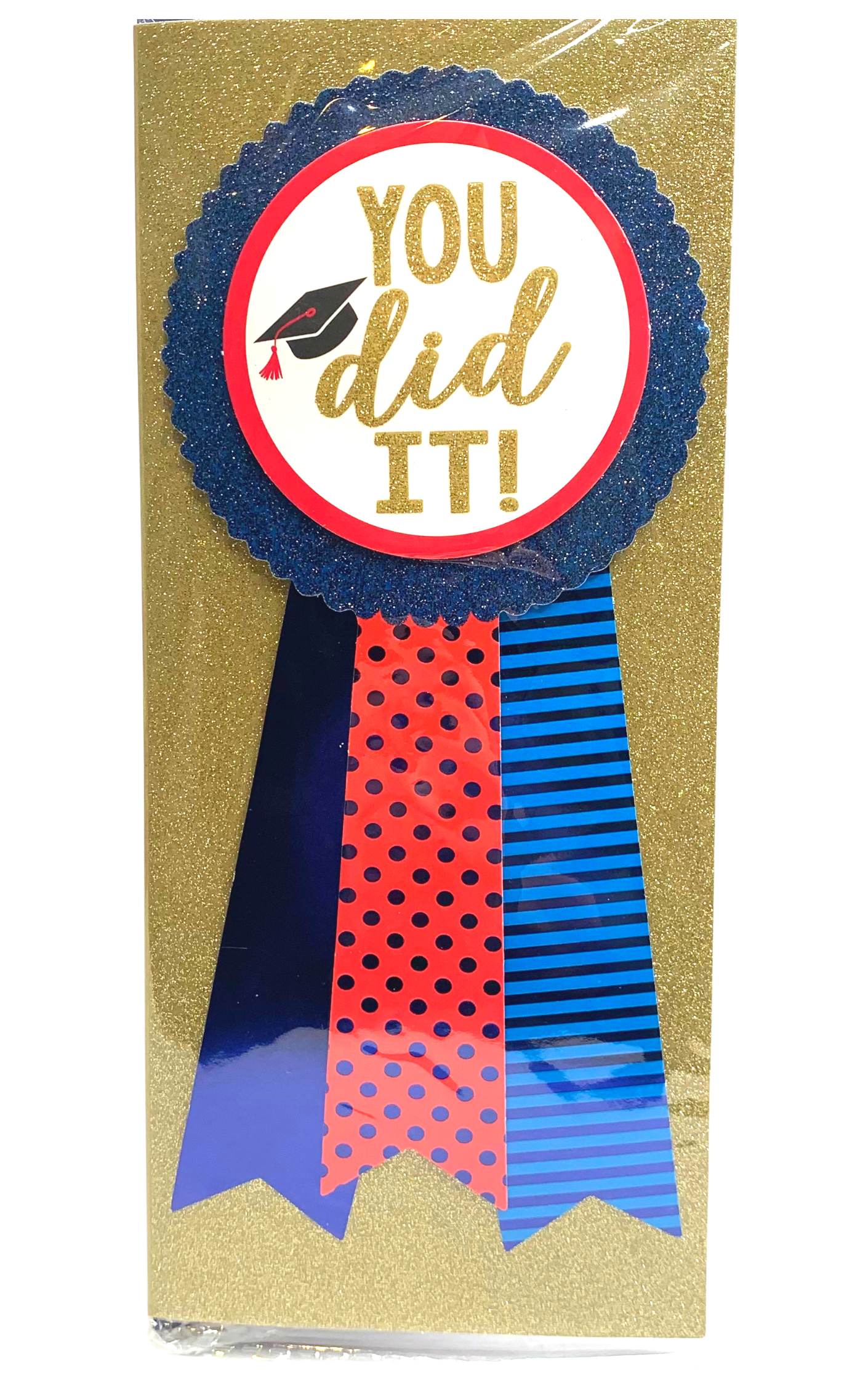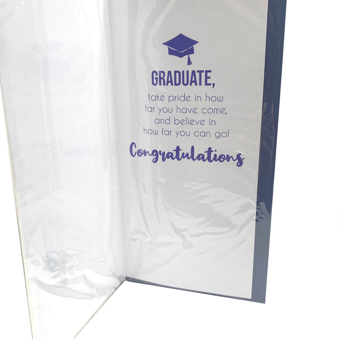 - Inside reads: "Graduate, take pride in how far you have come, and believe in how far you can go! Congratulations"