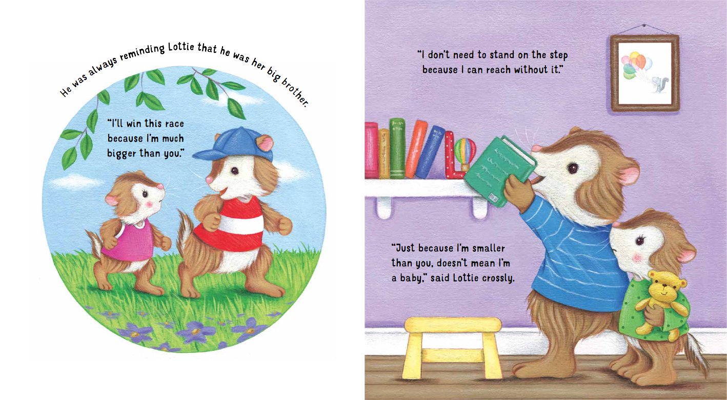 A funny and charming picture book about sibling rivalry and the hurry to grow up. George is Lottie’s big brother. He can run faster and reach higher than her. One day at the fairground, they spot the super-duper Big Dipper rollercoaster. Lottie is too small to ride it, but George is determined to prove that he's grown up enough to handle anything… I’m Bigger Than You is the perfect bedtime story for siblings.