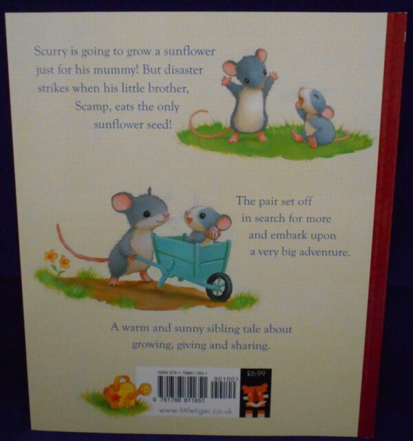 Scurry loves sunflowers. He’s got one special seed that he’s going to grow just for his mummy. But his little brother, Scamp, loves sunflowers seeds, and when he eats his brother’s special seed, he’s in real trouble. Two small mice. One sunflower seed. And a very big adventure.