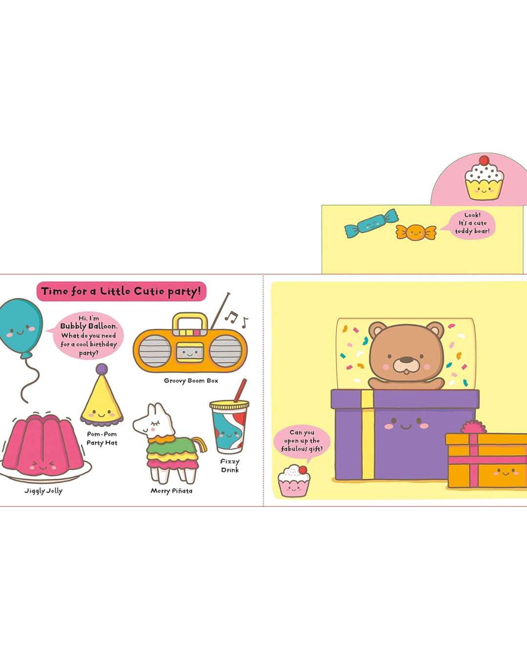 Pull-tab Surprise: Little Cuties is a new novelty title from Priddy Books. With Kawaii-style artwork and a pull-tab on every spread, this book is sure to appeal to any young child. Throughout the book the Little Cutie friends show you how to make different things–from a super-cool birthday party, a pretty garden and even a trip to the seaside! By pulling the shaped tab on each spread, children will be able to transform the scene into something amazing! As well as teaching kids about the world around them, there are simple word labels to help learn first words and improve speaking skills. Kids will love discovering new things with the Little Cuties!