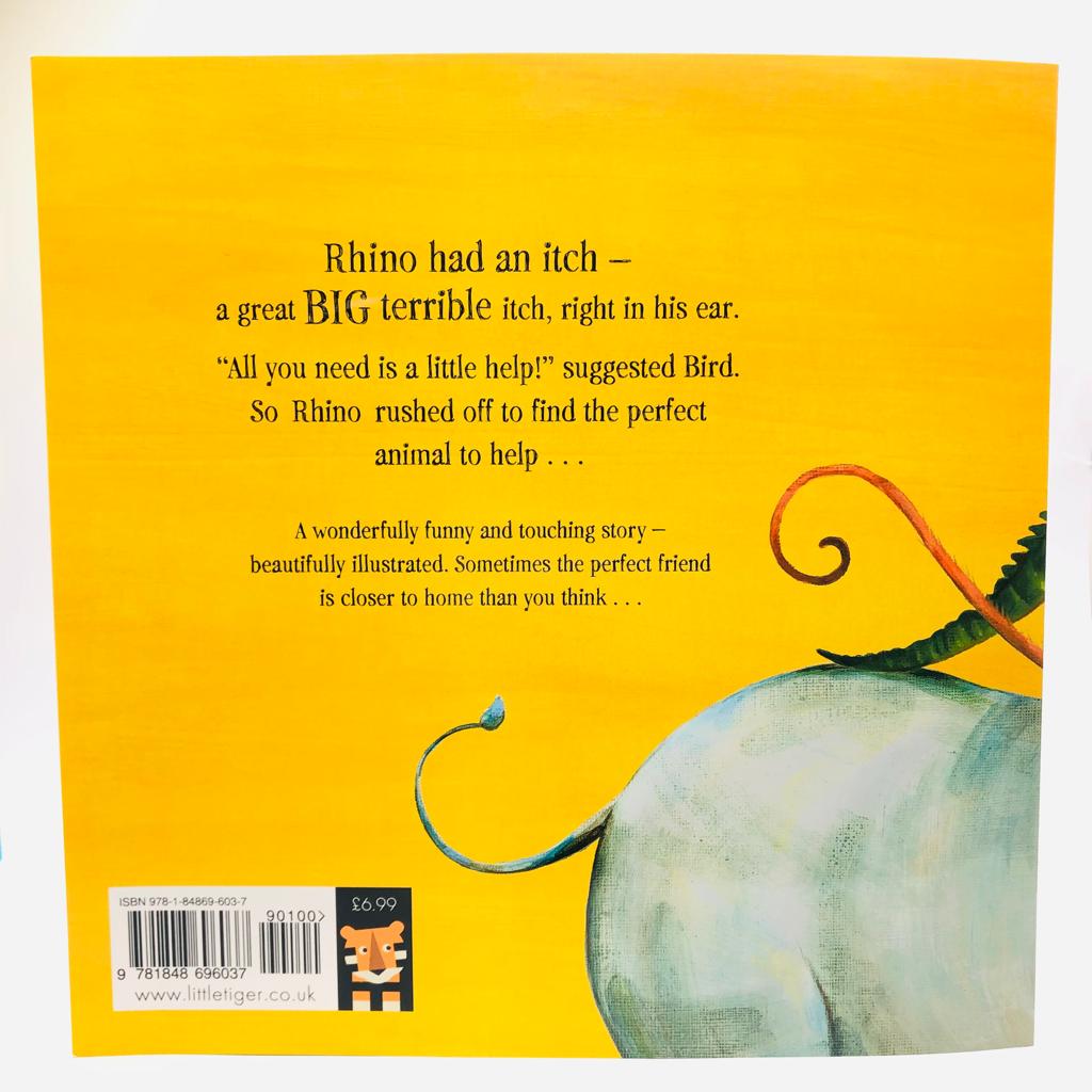 "All you need is a little help!" suggests Bird. So Rhino rushes off to find an animal big enough to scratch his great, big itch. But the animals are all too slimy, too silly, too prickly or just too scary! Can anyone help poor Rhino?