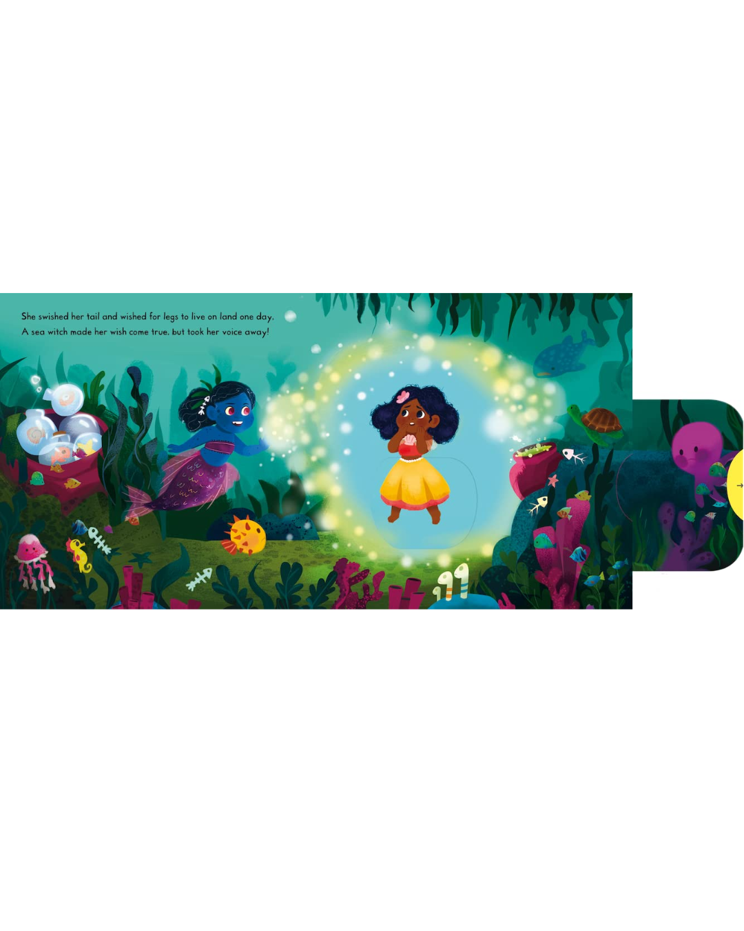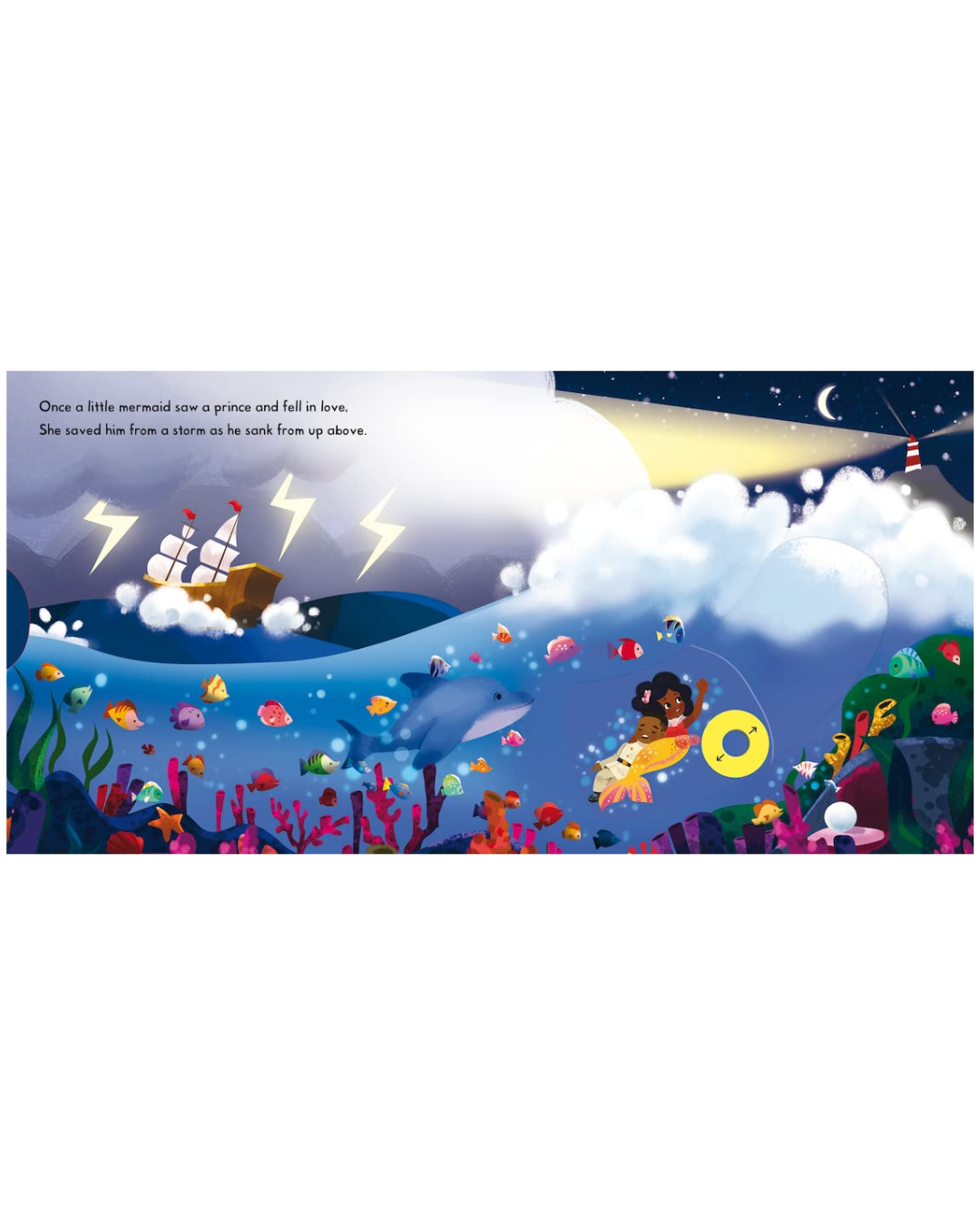 Push, pull and turn mechanisms follow the little mermaid as she swims up above to save the prince, before meeting the fearsome sea witch. This well-loved fairy tale is beautifully re-imagined for a new generation by children's illustrator Nneka Myers.