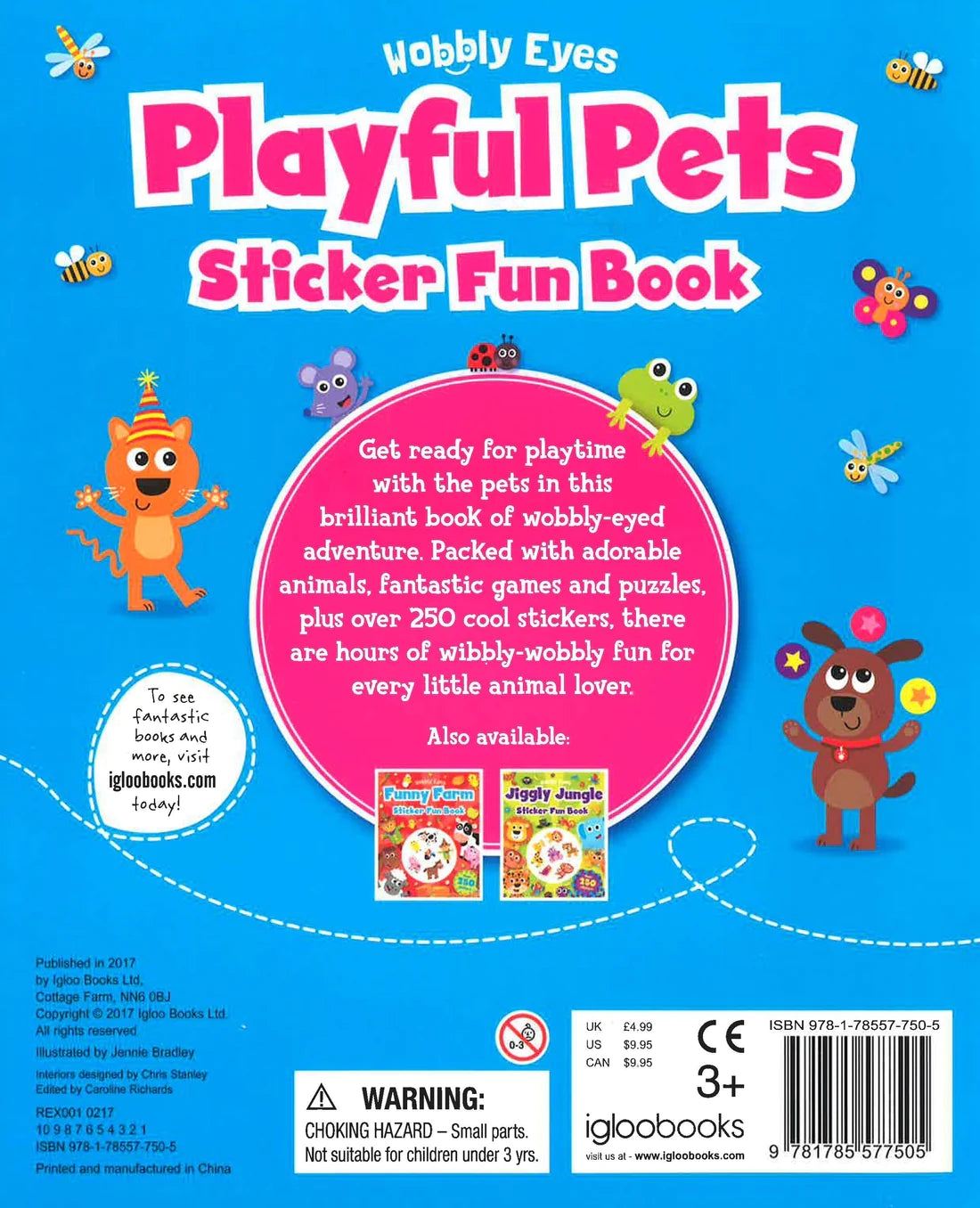 Get ready for playtime with the pets in this brilliant book of wobbly-eyed adventure. Packed with adorable animals, fantastic games and puzzles plus over 250 cool stickers, there are hours of wibbly-wobbly fun for every little animal lover.
